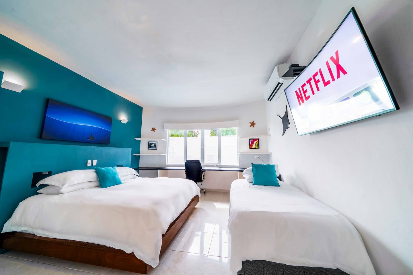 Suites Layouts: Master Suite - King bed with extra large bathroom with hydromassage bathtub Guest Suite 2 - King Bed and Single Bed with private bathroom Guest Suite 3 - 2 Double Bed with private bathroom Guest Suite 4 - Double Bed and Single Bed with private bathroom Guest Suite 5 - Double Bed with private bathroom Expect a VIP concierge service to help you reserve in the best restraunts, private yachts, expeditions, catering service and private transportation
