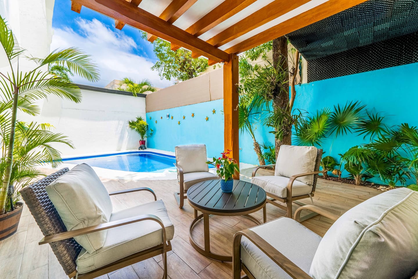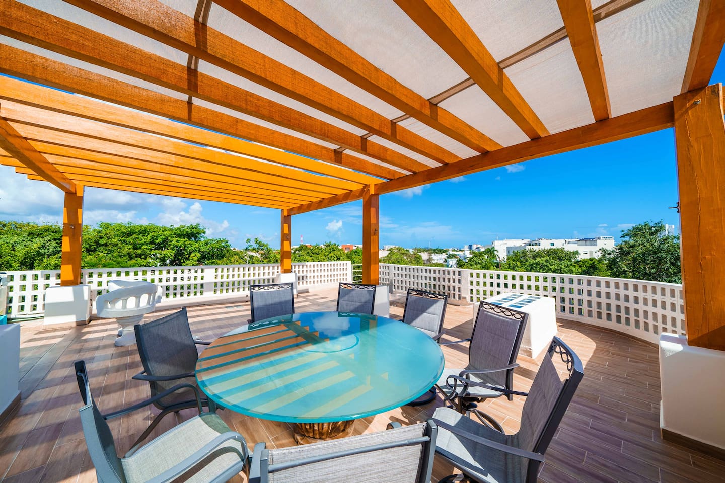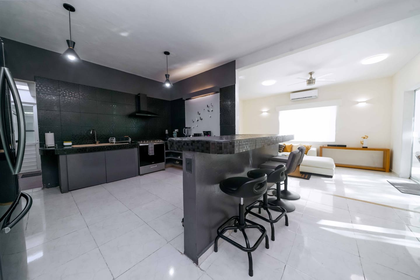 - Private Pool - 5 Bedrooms with private bathroom - Roof Garden with panoramic view - Fully equipped kitchen - Safe Neighborhood and Free Parking - Fast Wifi 300mb - Ping-Pong table - PlayStation 5 Privileged location at a quiet residential area with all sorts of restaurants and walking distance