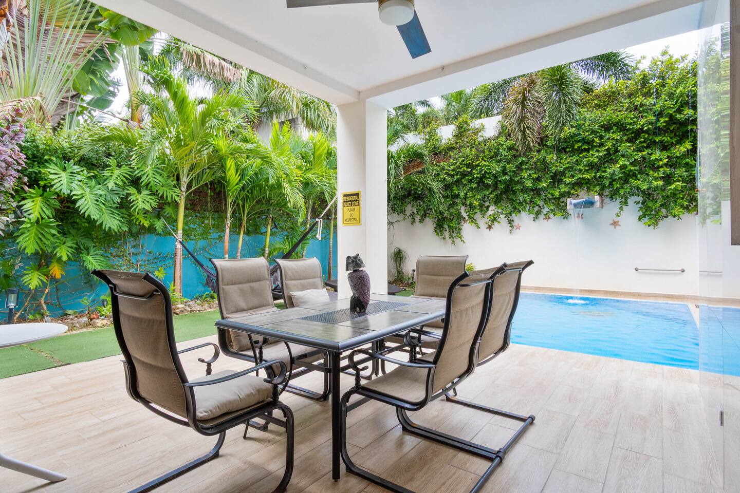 Ubicado en una de las zonas residenciales más exclusivas y seguras de Cancún, con todo tipo de restaurantes, bares y comercios caminando Se debe tener respeto a los vecinos moderando el volumen de la música y ruido durante la noche.